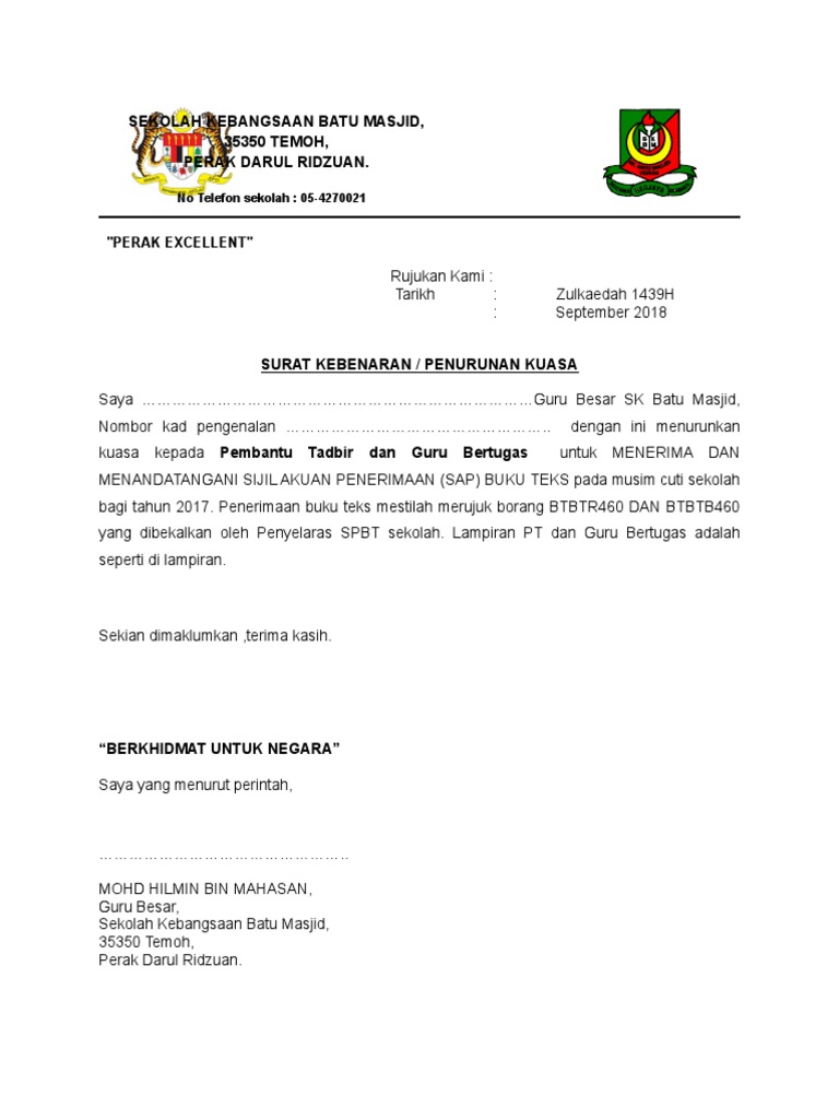 Contoh Surat Turun Kuasa Penerimaan Buku Dan Tandatangan Invios Pdf