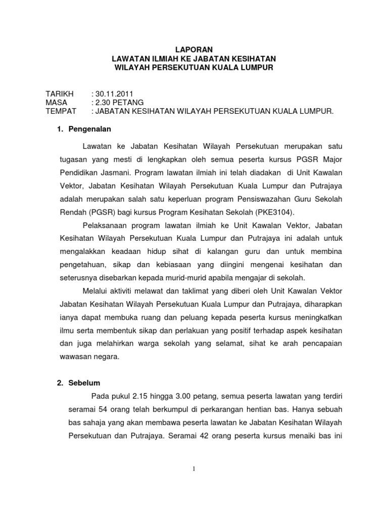 Laporan Lawatan Kesihatan Kl Pdf
